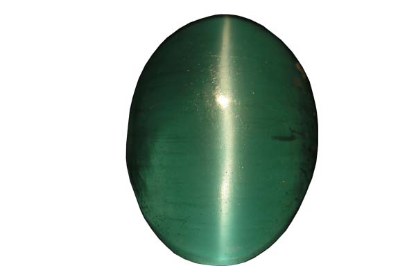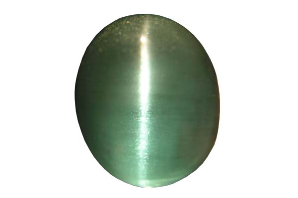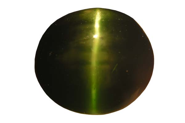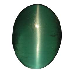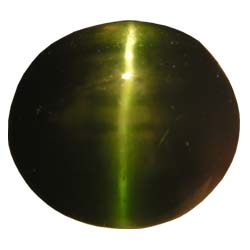 A rare cats eye kornerupine with a well defined, sharp eye. The body color is a dark green which changes to a light grass green in the region of the eye as it shifts. The eye is complete and extends across the full body of the stone. Nice collector stone! This stone is from Sri Lanka.