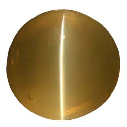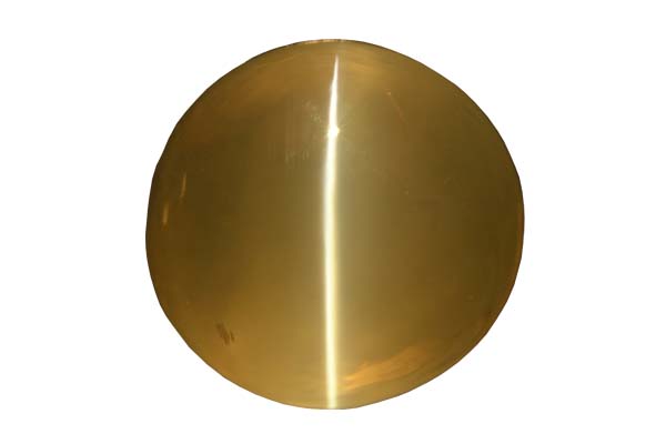 Super cat's eye chrysoberyl with a razor-sharp, well defined, complete eye that radiates a bright white color. The body is more translucent than what the picture shows and is a pleasing greenish yellow color. The base of the stone tapers slightly from the middle where the length and width are quoted. The eye just seems to float on the surface. A really striking stone from Sri Lanka.