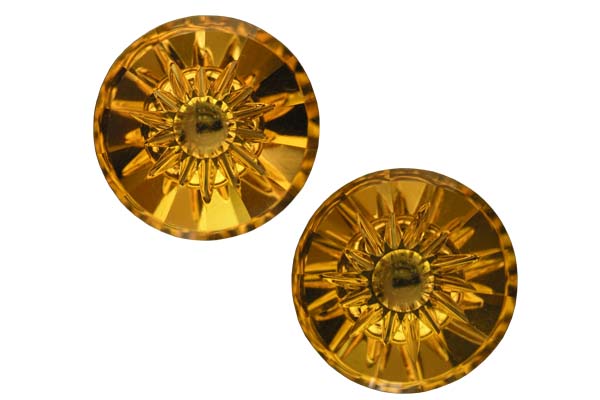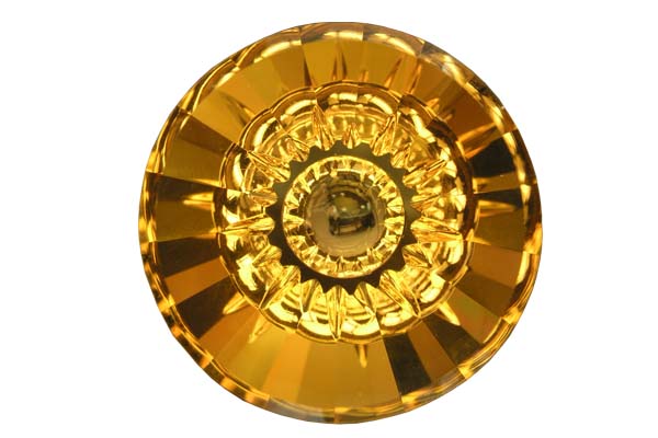 Very stylish Brazilian citrine in a modern, attractive cut. A single round, flat facet comprises the table which extends over the entire face of the stone. The pavilion is a faceted, radiating cone that tapers to a circular, concave-cut culet. Groves in the pavilion facets form a starburst pattern that is visible from the face and also from reflections from the pavilion sides. Will make a fantastic piece of modern jewelry.
