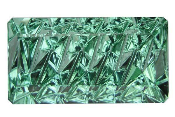 OK, just flat-out fantastic! This Zig-Zag seafoam tourmaline is just full of life and movement. The stone is essentially flawless, bright and clear. This gemstone was cut by John Dyer. A Zig-Zag cut in this same material was featured on the cover of Lapidary Journal in 2007. This stone is from Afghanistan.